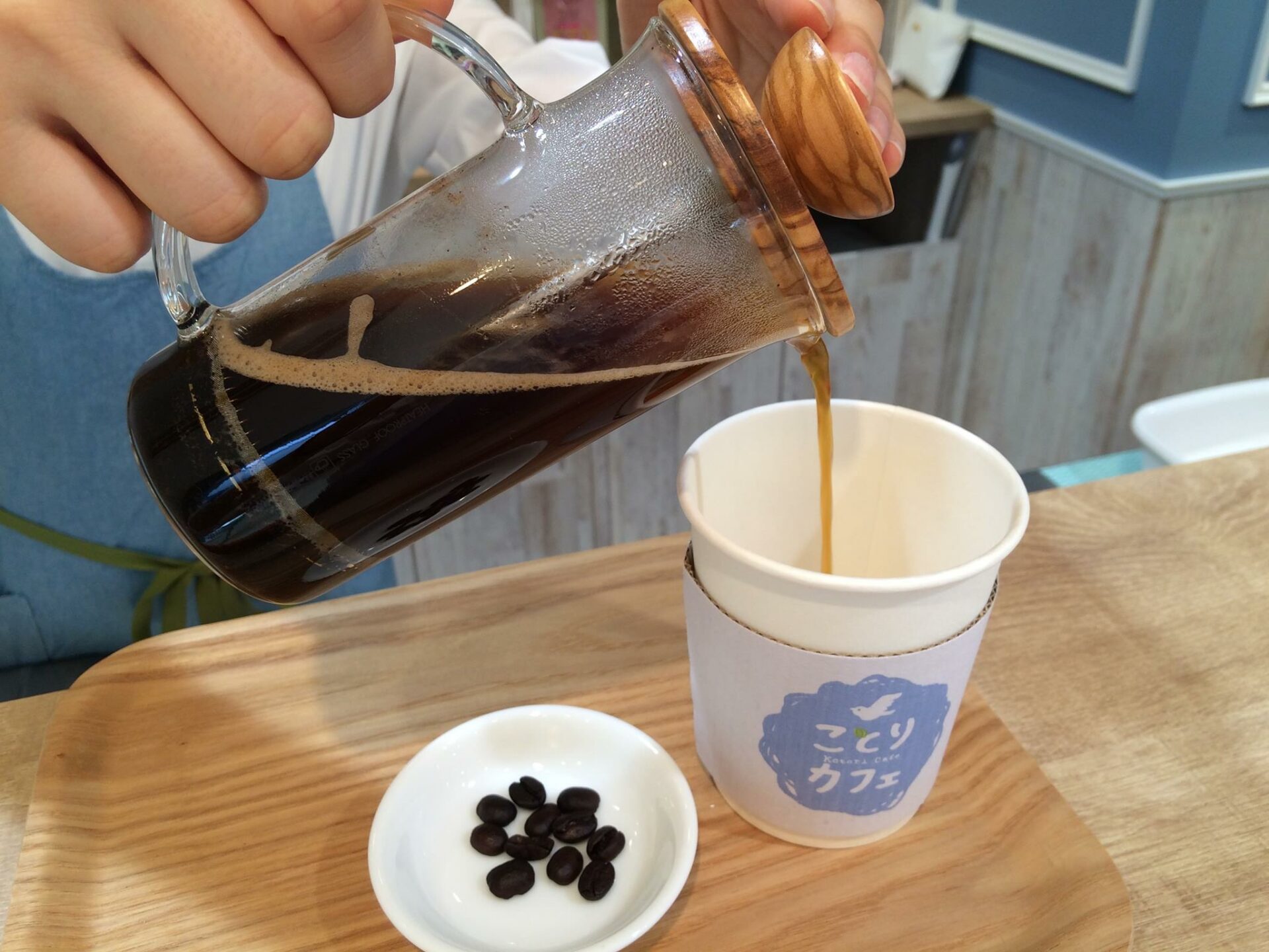 かわいいスタッフさんが、一杯一杯フレンチプレスで淹れるカフェインレスコーヒーをぜひお楽しみください(*´꒳`*)