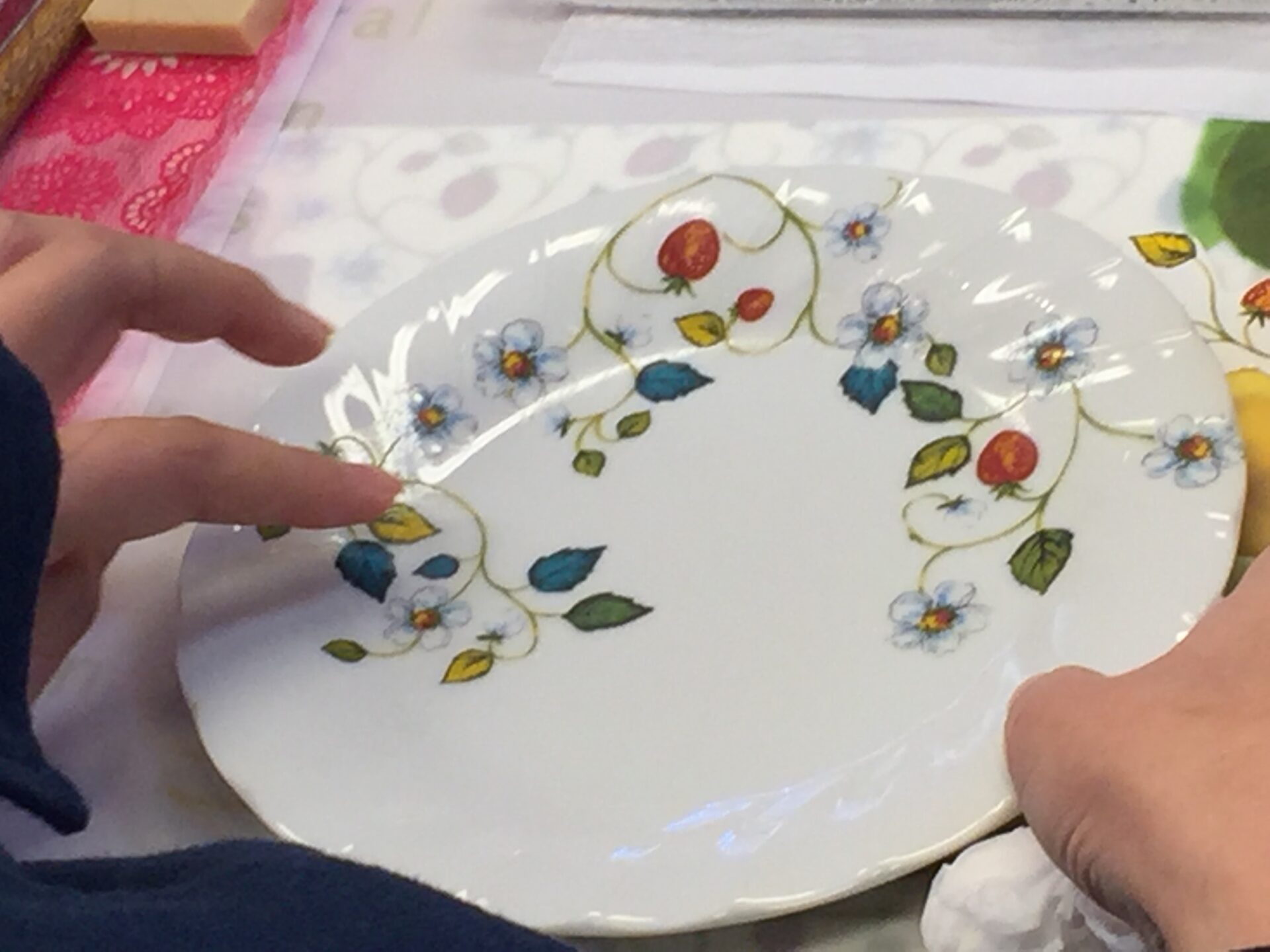 白磁の食器に専用のフィルムを貼りつけ、800度の窯で焼成する事でフィルムの絵柄が焼きつきオリジナルの食器ができるというもの🍽
