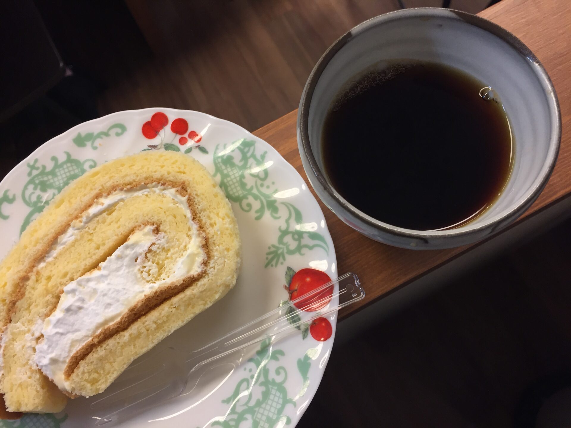 最後は、コーヒーと差し入れのロールケーキで楽しくお茶会😃