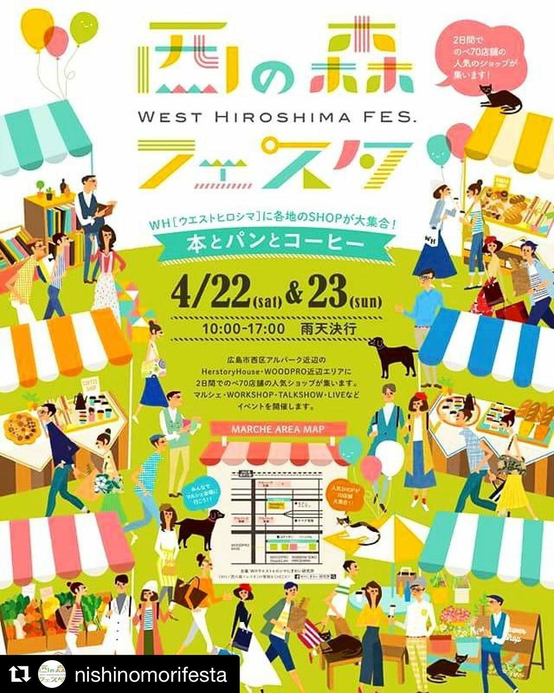 「本とパンとコーヒー」というテーマで4/22.23は合計約70店舗を集めて地域全体で盛り上がるイベント
